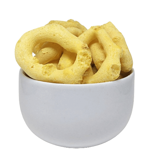 Biscoito de polvilho salgado super crocante sabor queijo. Produto vendido à granel.